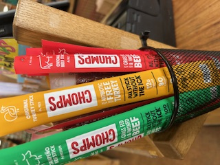 CHOMPS: If you need a quick snack, grab these vs. a protein bar. No sugar, great protein, low calorie and will tie you over between meals.
